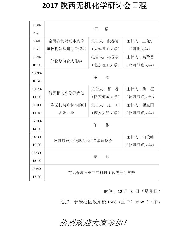 2017陕西无机化学研讨会