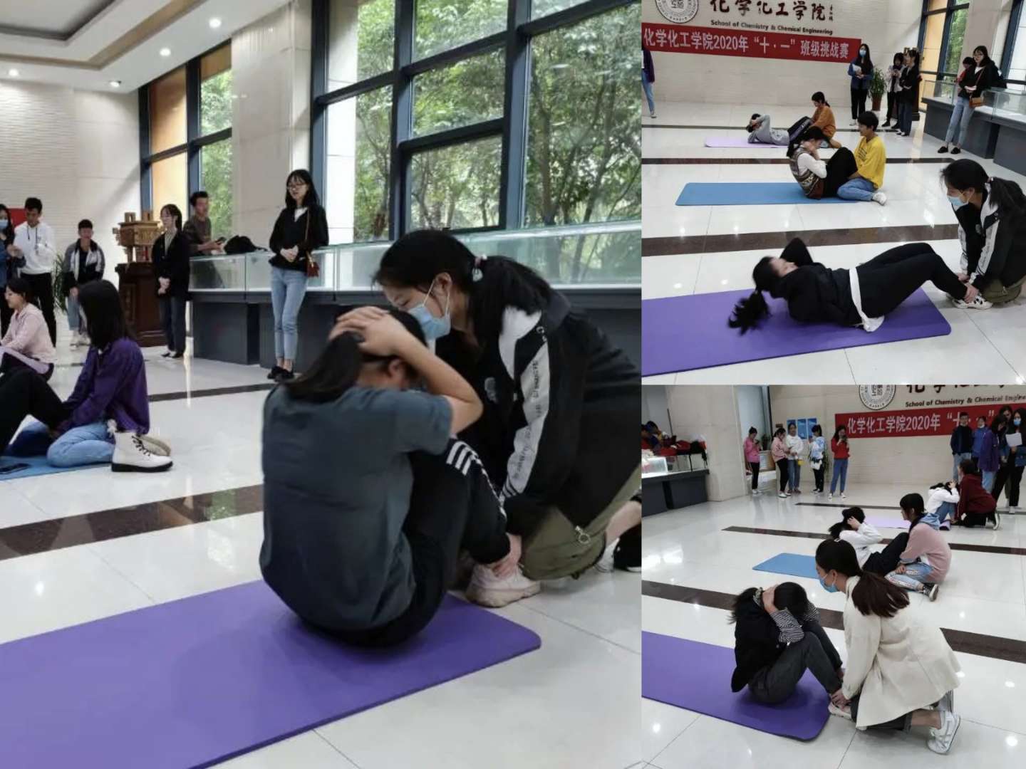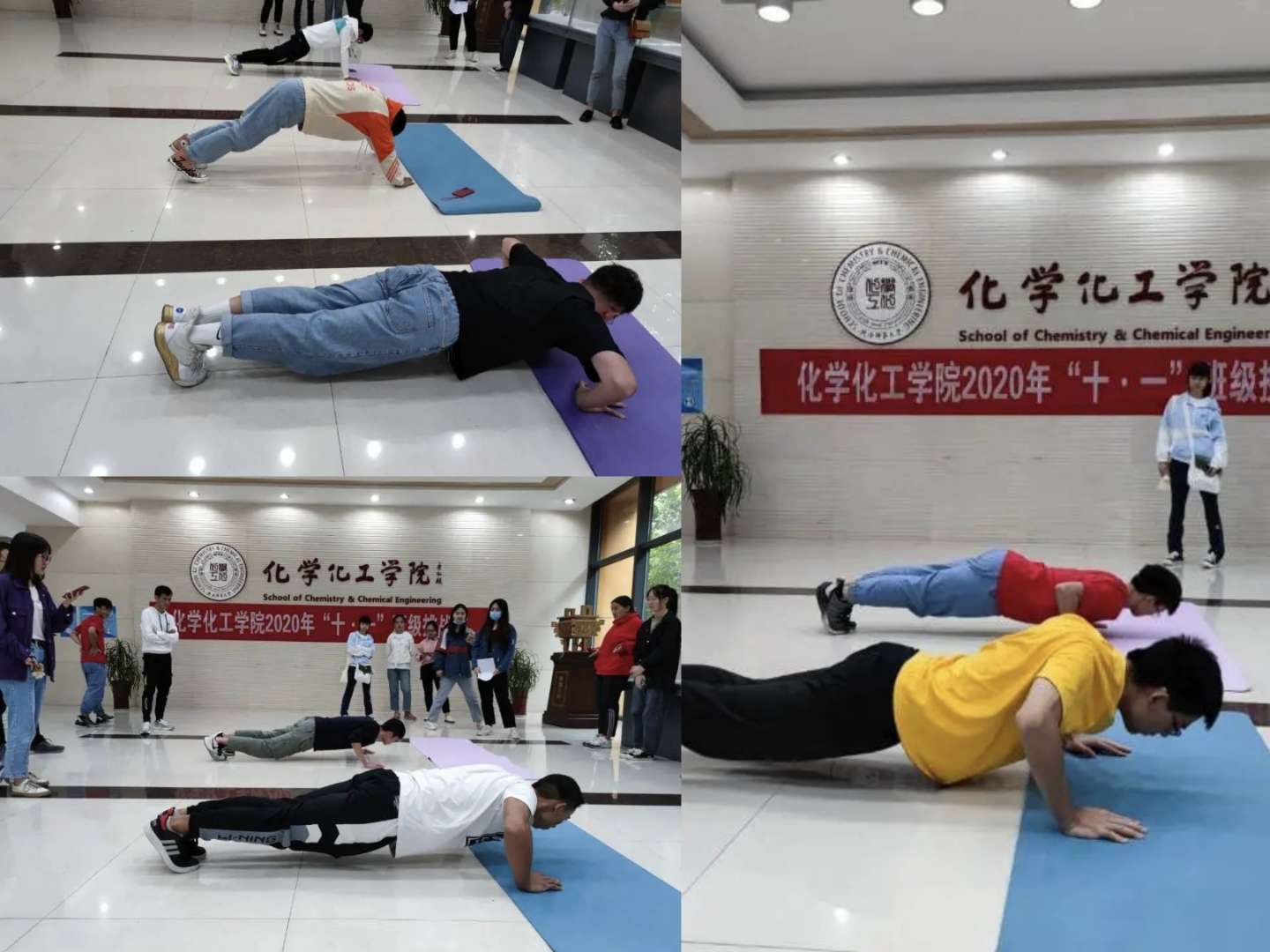 再者是俯卧撑竞速,裁判说明俯卧撑的动作要领与规范后,各由一名文体委员负责记录一名选手的成绩,两组同时进行。参赛选手动作规范,不分高下,多番你追我赶,互不相让又彼此赶超让比赛结果悬念丛生,将比赛推向了高潮。