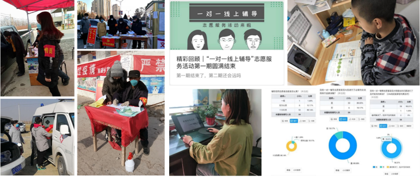 疫情就是命令,防控就是责任。公司青年员工虽不能奔赴前线,但他们也积极参与到了战“疫”专项志愿服务中:通过为医护人员子女提供线上辅导,让一线人员没有后顾之忧;助力社区、村庄的疫情联防联控工作,让社区成为疫情防控的坚强堡垒;同时,公司团委结合实际情况,策划了“一对一线上辅导”,组织更多身在后方的学子用自己的方式参与抗疫志愿服务。“一对一线上辅导”活动覆盖到全院四个年级本科生,使员工在分享中提高综合能力,在获取知识的同时培养奉献精神。