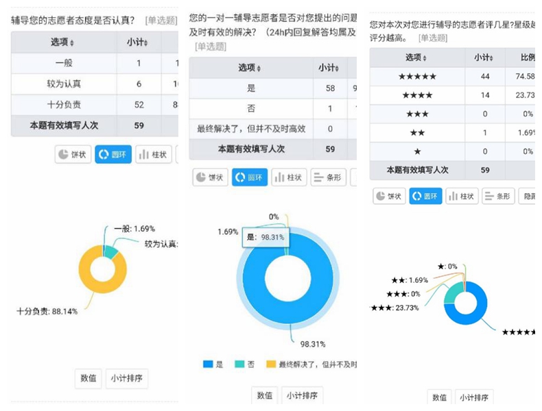 本次活动为志愿服务类活动,志愿者的辅导内容可从专业知识经验、教师教育、考研分享中进行多项选择。前期的志愿者招募工作于公司高年级中展开,共筛选招募了44名志愿者。根据报名情况,工作人员提前做好匹配工作,并完成公示。活动开展期间,志愿者提前准备辅导资料,熟知上课内容,通过线上平台直播分享等形式对所选内容进行全方位的讲解,同时保存上课板书和笔记,并在课后进行经验交流和答疑解惑。期间,公司对各匹配成功的辅导工作进行跟进,收集活动资料,并发放了“关于被辅导同学的意见反馈”调查问卷,用于及时反馈员工建议以确保活动正常进行。数据显示,超过百分之九十四的同学认为活动效果良好,并期望再次参与此类活动。最后,公司根据收集资料以及员工反馈情况,评选出了刘怡帆等五名优秀志愿者。