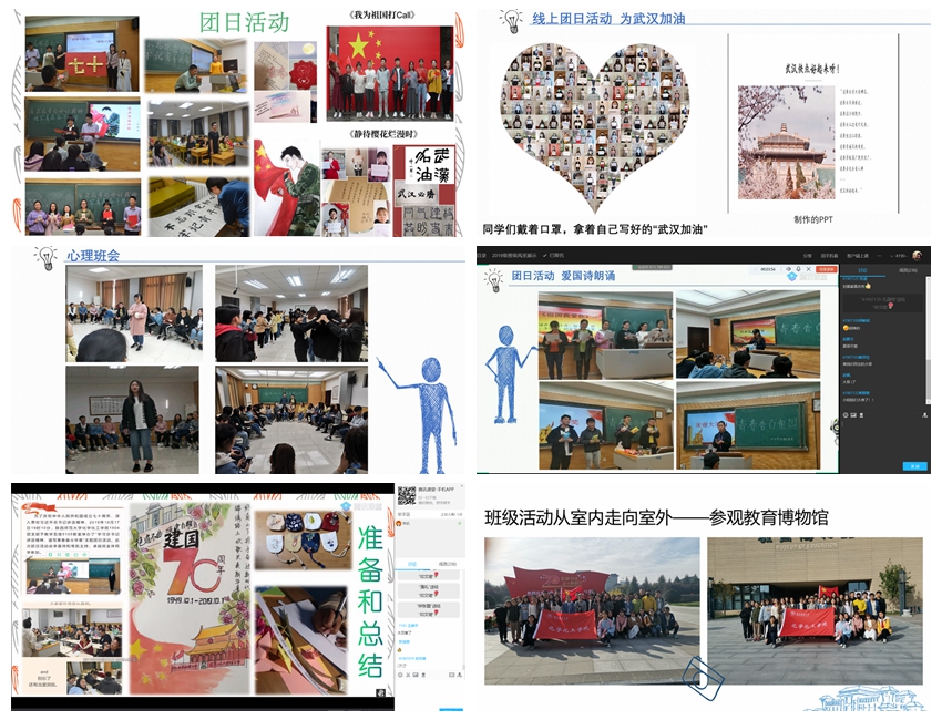 班级活动方面,各班梳理了班会、团日活动、心理团体辅导等活动的成果,也从活动的参与广度上展示了班级同学在各类文体活动、志愿服务活动及社会实践中所获荣誉的情况。