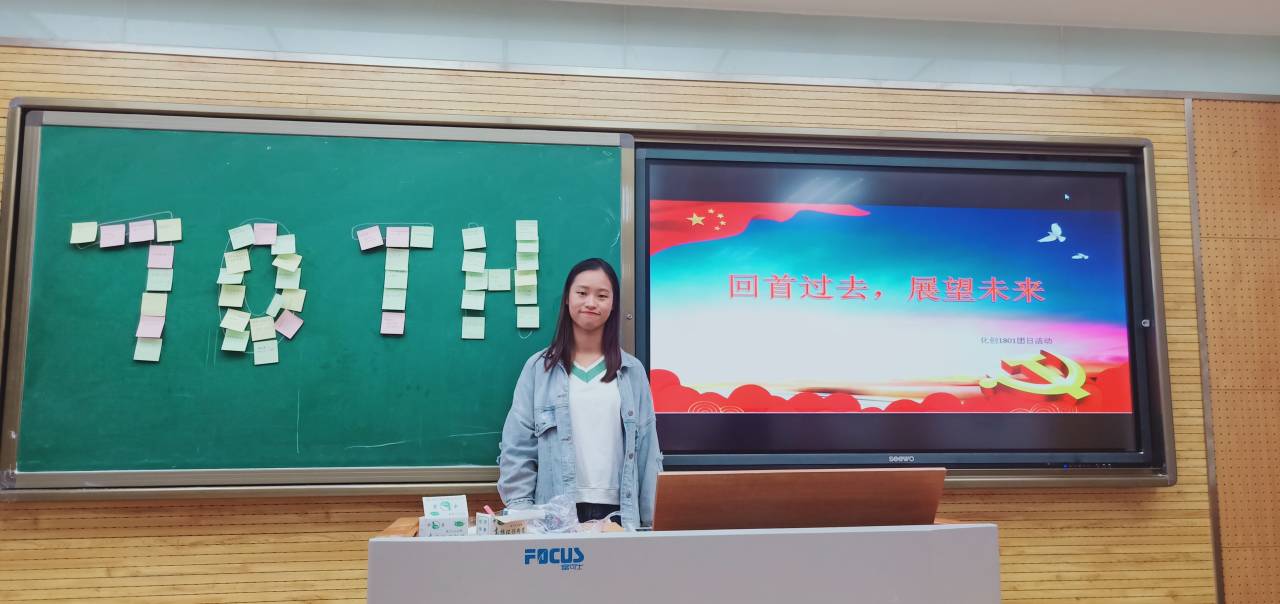 庆祝祖国70周年华诞,弘扬爱国主义精神,激发同学们的爱国热情,加大对老员工的爱国主义教育,丰富基层团组织生活,提高团员的思想道德修养,化创1801班于2019年9月20日,在雁塔校区教学五楼5302教室,开展了主题为“回首过去,展望未来”主题团日活动。