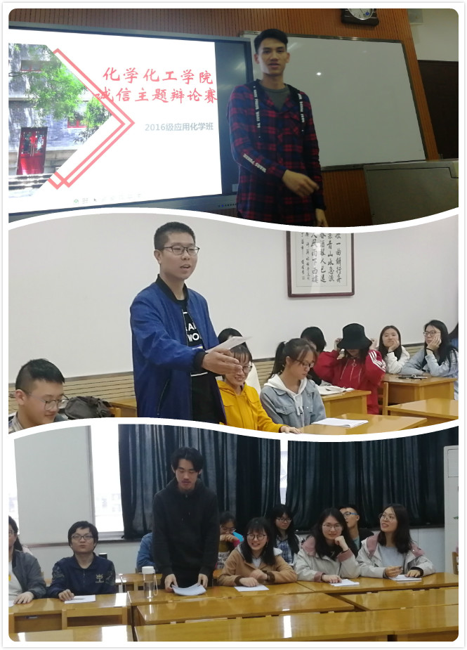 为了响应公司诚信活动月的到来,加强同学们的诚信意识,让同学们都能做一名诚信老员工。2019年4月17日,应用化学1601班全体成员在长安校区文渊楼1621教室举办了以“善意的谎言算不算不讲诚信”为主题的诚信班会。