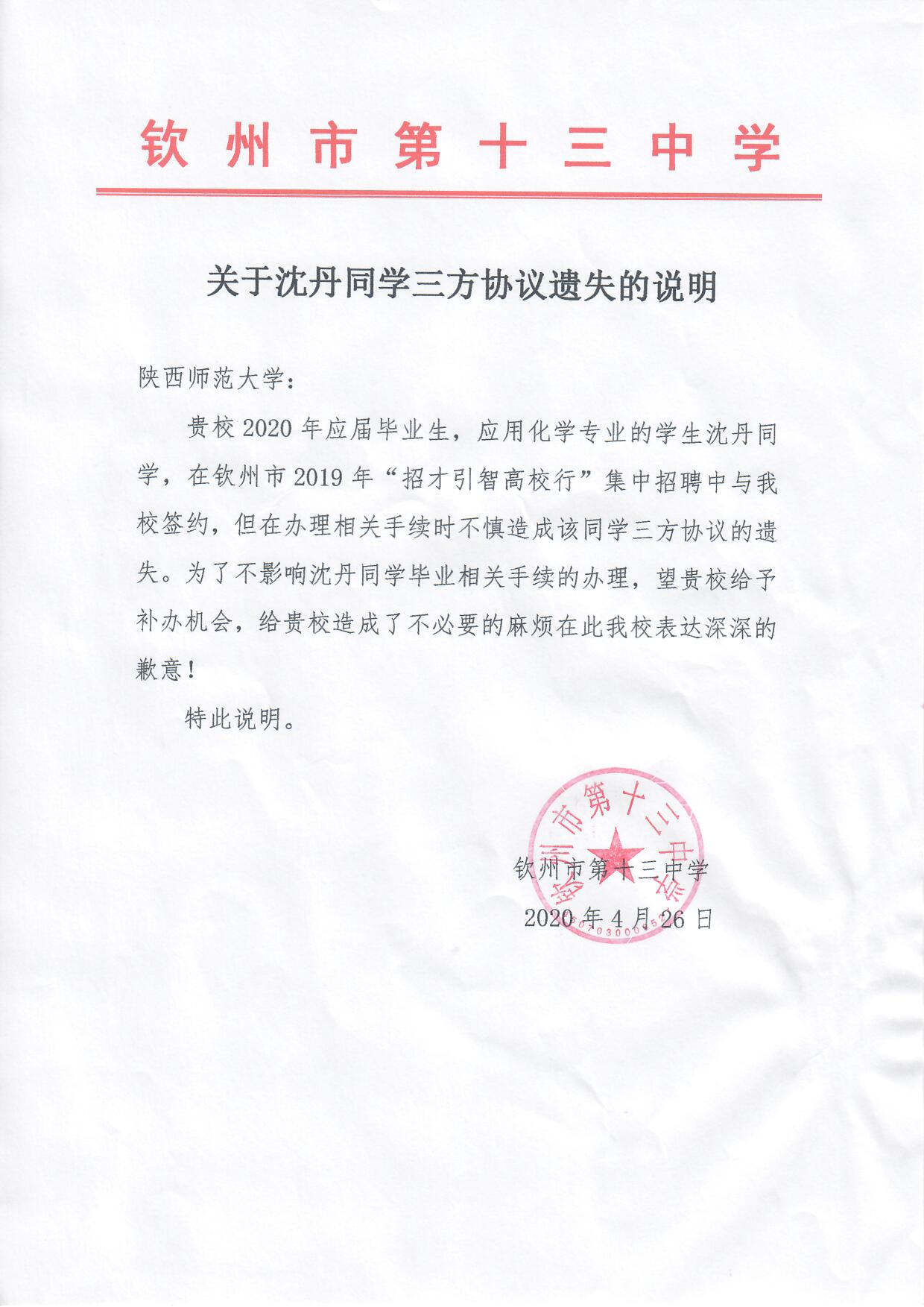 beats365唯一官方网站2016级应用化学(本科专业)在签约过程中协议书不慎丢失(证明如下),其协议书编号0001030,现予以作废,特此声明!