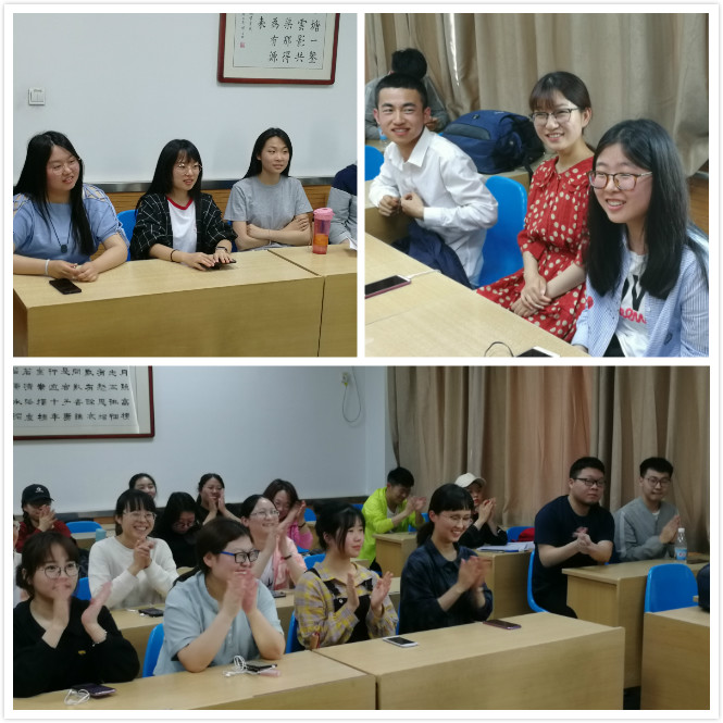 本次班会参考了中国诗词大会的竞赛模式,意在使同学们借诗词之美而自主有效地调节考研复习压力,并帮助一些同学解决个人心理健康以及人际交往问题。比赛共分三轮进行,第一轮文学知识竞赛同学们热情高涨,六个小组抢答十分激烈。第二轮是个人文学展示,同学们积极上台分享了自己喜欢的诗词或文学人物,大家互相交流,理解感悟,中国古典文化之美轻抚着每个人的神经。第三轮飞花令以“春”、“酒”为令,决胜的两组同学并驱争先,赢得了同学们的阵阵喝彩和热烈的掌声。