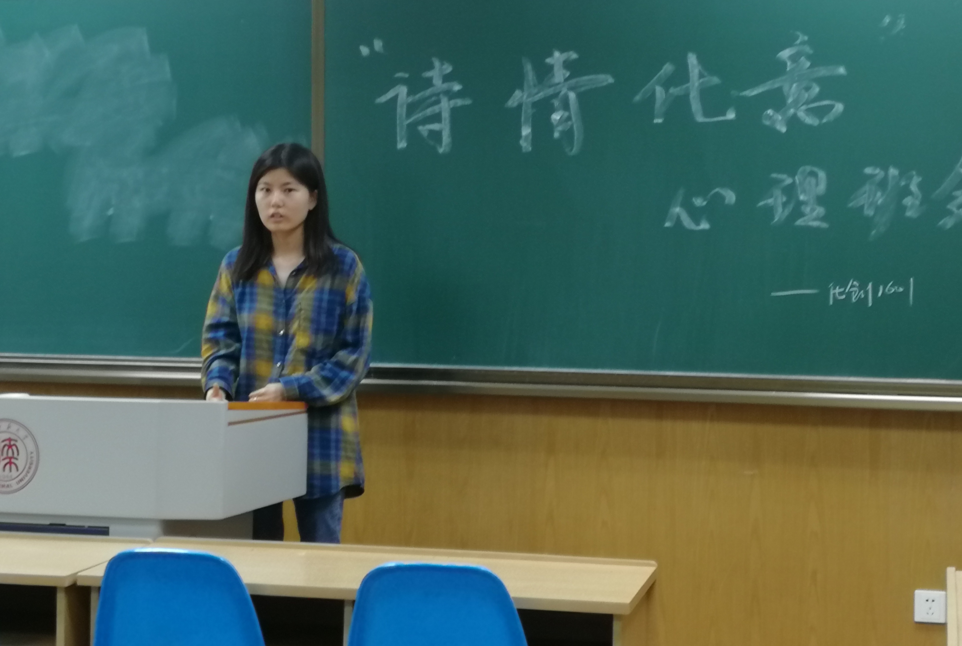4月18日下午,化学(创新实验班)1601班在文渊楼1306举行了主题为“诗情‘化’意”的心理班会。