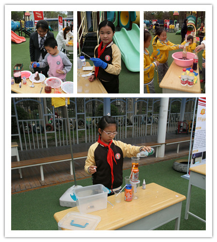 下午14:30,一至五年级的同学们在老师的带领下,按照年级从低到高的顺序依次进入展区进行参观。大操场的展区共分为三块,分别是:科幻画展区、智能组合大比拼和科学奥秘体验区,而科学奥秘体验区正是由来自公司的十七个团队的趣味化学实验展所组成。考虑到小朋友们的理解能力,此次选取的展示实验均是由贴近生活的实验原理和明显且常见的实验现象构成,操作便捷,装置简单,旨在帮助同学们感受实验的过程。
