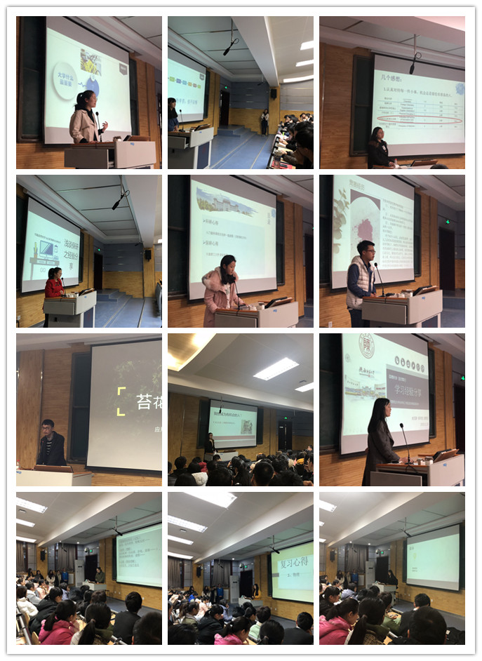 为充分发挥朋辈优秀学子的示范引领作用,更好的帮助低年级同学确定未来发展目标、合理规划学习生活,本学期公司2017级员工利用周末晚点名,邀请到26位表现优异的各年级优秀学子,分别从考研保研、学科竞赛、社会实践、交流交换等方面开展交流分享,通过主题分享和现场互动的方式,实现朋辈互助、共同成长。