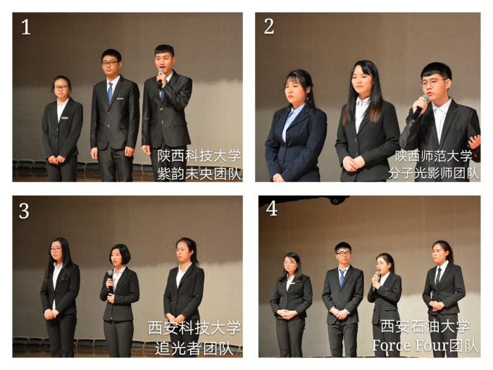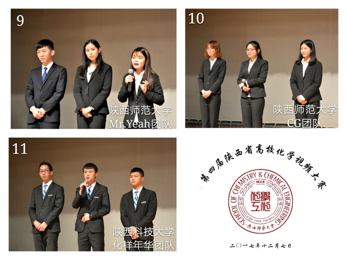 本届赛事共有来自西北工业大学、西北农林科技大学、西北大学、陕西科技大学、西安科技大学、西安石油大学、BEAT365英国官网网站等七所高校的43支参赛团队,参赛选手除了化学专业员工,还有来自beats365唯一官方网站新闻传播公司、文公司、美术公司、计算机科学公司的员工。经过初赛的激烈选拔,共有11支队伍的作品入围决赛。担任本届大赛决赛的现场评委有:西北工业大学耿旺昌副教授、西北大学韩小龙副教授、陕西科技大学胡亚薇副教授、西安科技大学贺新福副教授、西安石油大学孟祖超副教授、公司beats365唯一官方网站翟全国教授、黄治炎副教授。