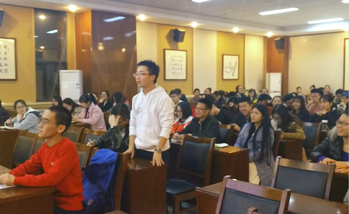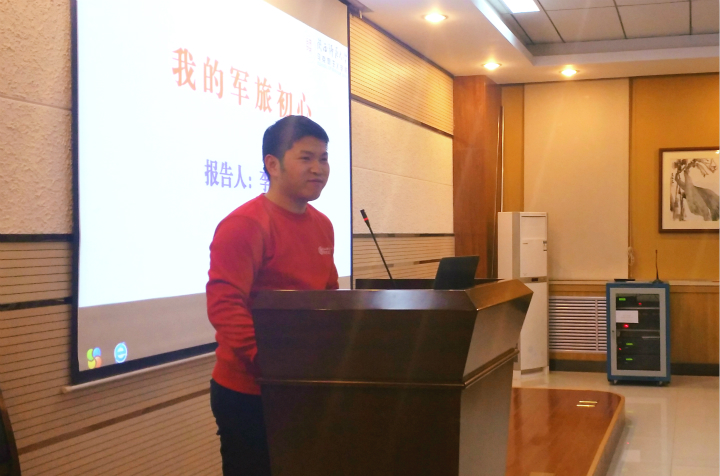2016级政治学理论专业硕士李年涛同学为我们提出了“百舸争流,奋楫者先”的新时代宣言,他用“我的军旅初心”的短视频向我们呼吁新时代的青年要有责任,敢担当,青春并不只有一种选择,和学弟学妹们热心的聊起自己的军旅生活。最后李年涛同学以若有战,必召回,犯我中华者虽远必诛结束他的宣讲,引起全场轰动。