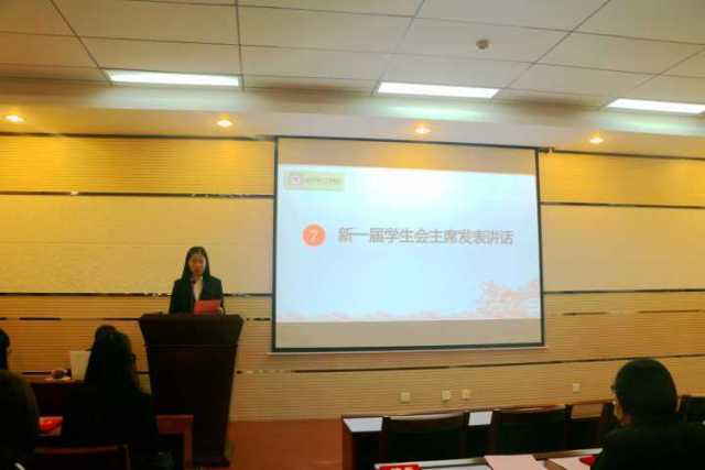 硕果累累,继往开来,新任员工会主席罗娜上台发言表示,新一届的团委、员工会成员将秉持一贯的优良作风,延续上一届的精神与热情,开创性地做好各项工作,在学习生活中严格要求自己,全心全意服务同学。