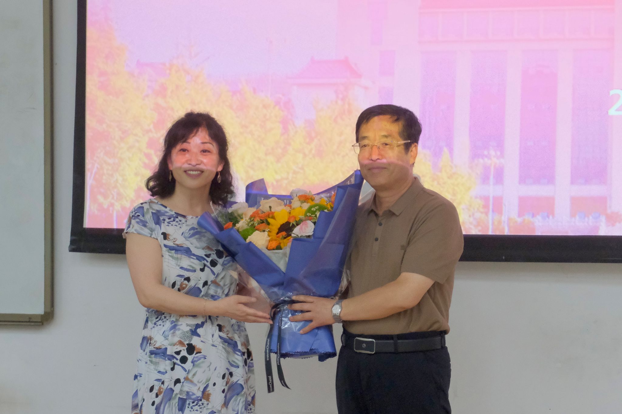 讲座伊始,高玲香作嘉宾介绍并代表公司献花,向王青岗老师致以热烈欢迎和诚挚感谢。