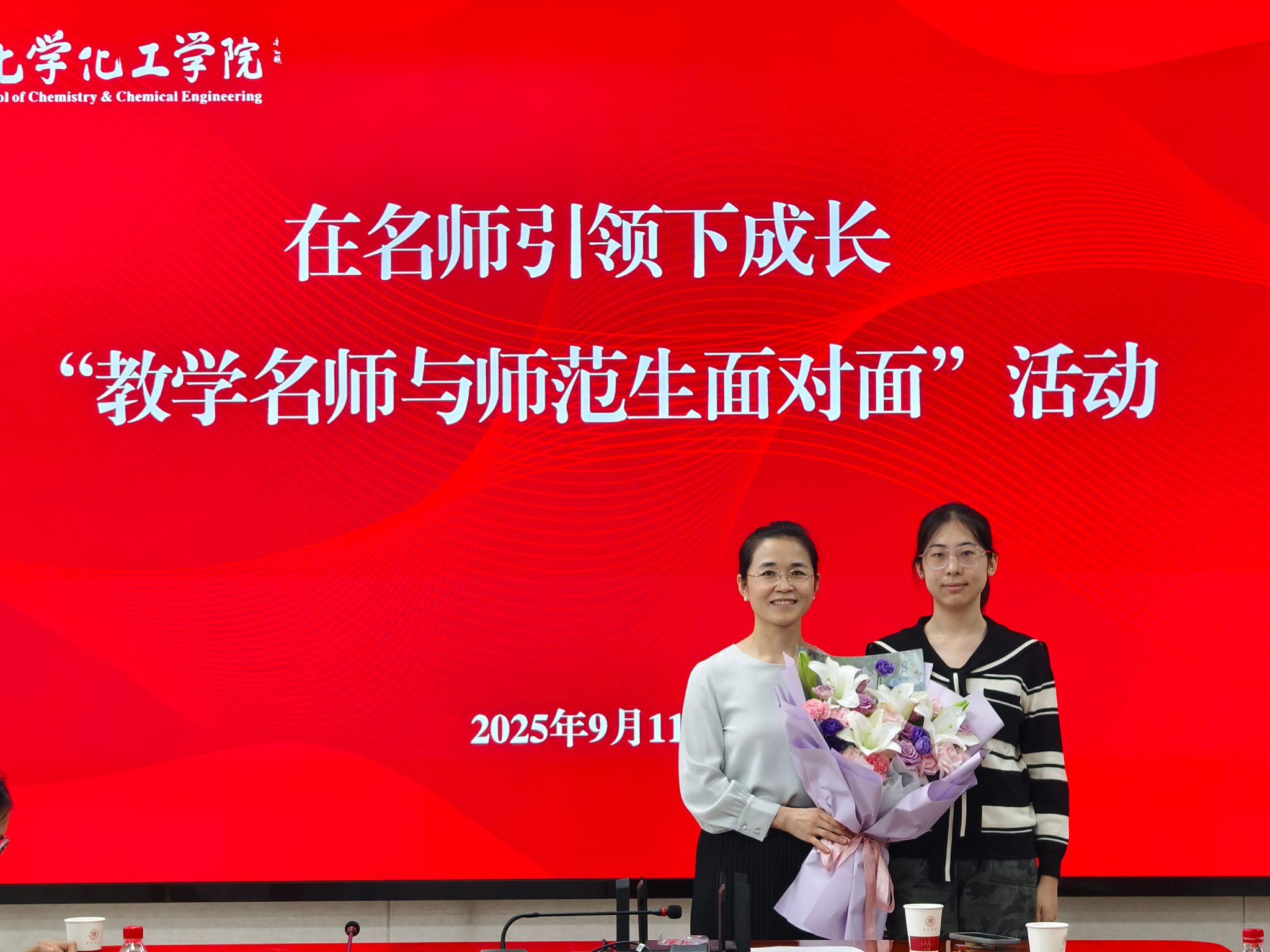 魏灵灵特地感谢了冒雨前来的各位同学,并围绕同学们广泛关心的“如何上好一堂化学课”“未来如何在高中化学老师和初中化学老师中做选择”等学习方面和就业方面的问题分享经验,并提出“知识为基,能力为强,素质为翼”的核心观点。在知识积累上,她强调要扎实学好专业课,广泛涉猎书籍,拓宽教育学、心理学等领域知识面,多听学科讲座以了解学科前沿,“打开属于自己的精神世界”。在教学技能提升上,她建议同学们可以通过观看教学竞赛视频、探索数字化资源充实自己;训练教学技能时,可自主选取教材内容,认真研读教材,梳理内在逻辑,在此基础上设计课堂并录制微课反思。魏灵灵强调,同学们要紧跟课标创新教学,同时借鉴优秀同行经验,与同伴分享教学设计,共同进步。在教师素养培养方面,她指出师范生应努力成为学识扎实、情怀深厚、灵魂高贵且具备创新创造力与引领力的卓越教师和教育家型教师,并以一位长期坚持“同课异构”、不断自我提升教学能力和科研能力的优秀中学教师为例,强调外界驱动不如自我探索,“终身学习型教师才能走得更远”。
