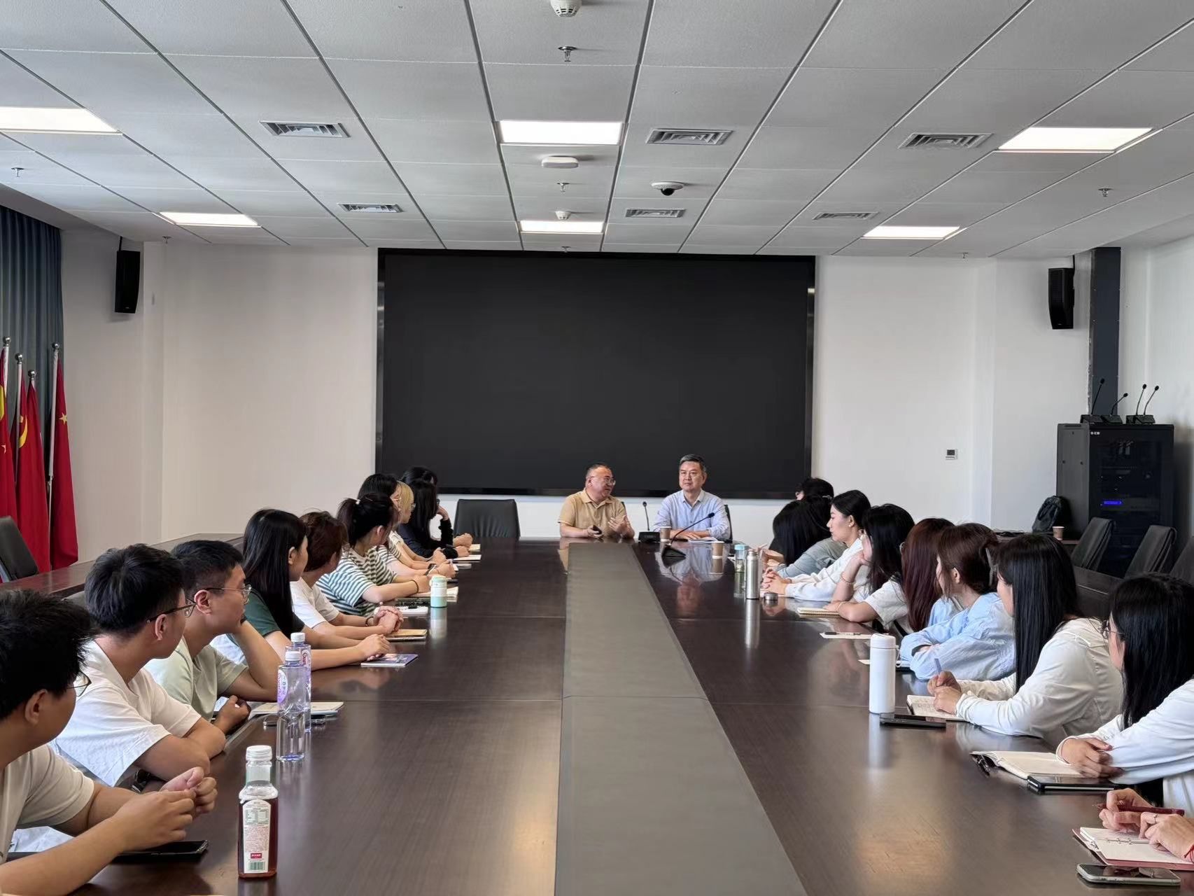 随后,同学们观看育才中学的宣传片,简单了解了公司的发展历史、校园环境、教学特色及校园文化。沙涛董事长特别给同学们介绍了校园的三大特色:分别为红色背景浓厚,公司是在红色血脉的传承中,一步步茁壮成长起来的;艺术、体育教育特长突出,为各大艺术体育高等学府输送了多名人才;科技特色鲜明,坚持“有教无类,个性发展”的思想,为员工创设了多种展示自我的平台。