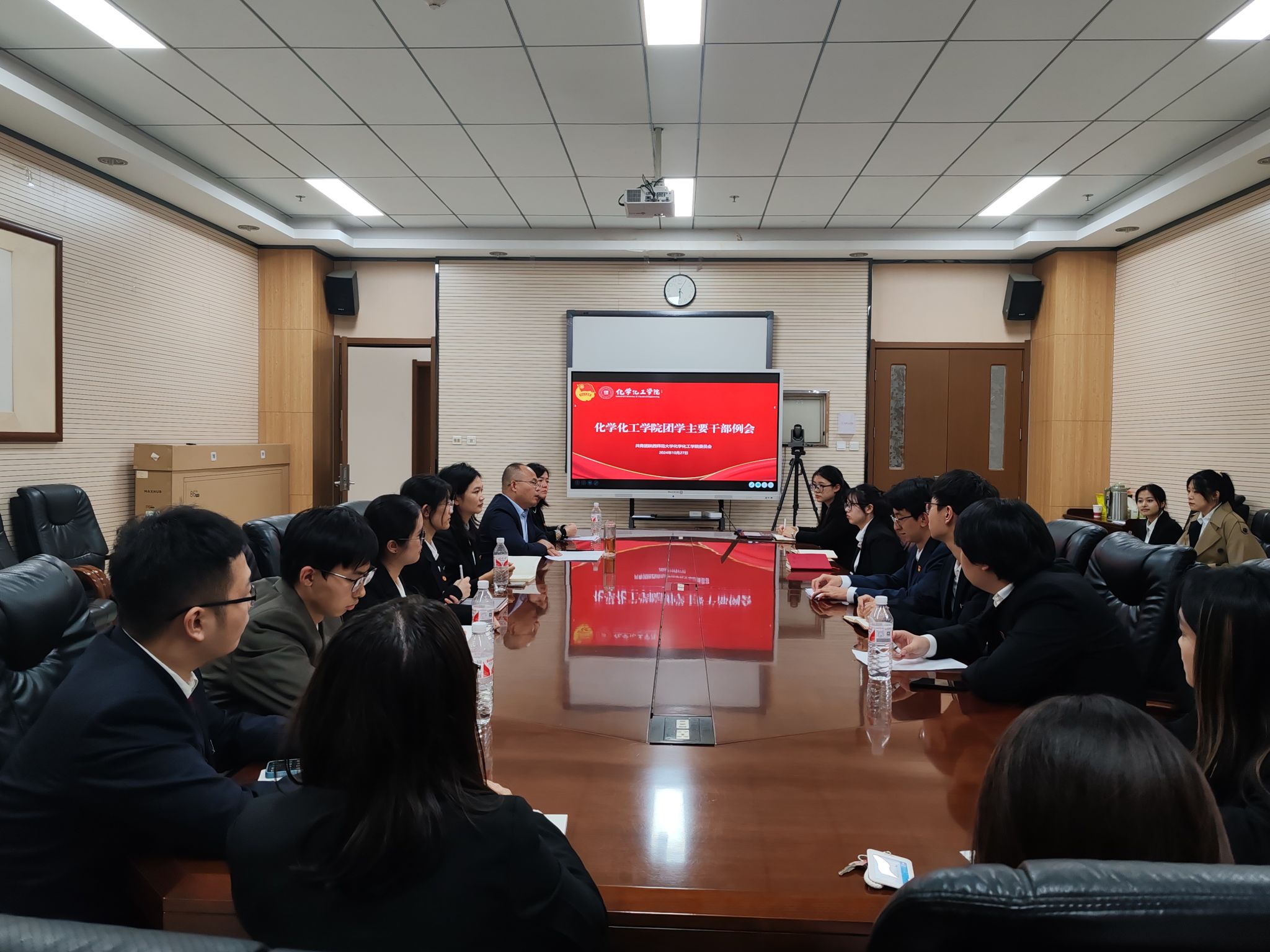 为明确新学期团学工作方向,鼓励员工干部以更加饱满的热情和扎实的工作作风投入到本学年的团学工作中,公司于10月27日在致知楼1668会议室召开秋季学期团学系统工作例会暨暑期社会实践优秀团队宣讲会。公司党委副书记贾颍辉,团委书记杨子熙,各年级辅导员,公司团委、员工会(研究生会)、“氢风化语”新媒体工作室和公司各社团主要负责人,各年级班长以及团支部委员会成员参加本次会议。会议由2022级本科生练宸希主持。