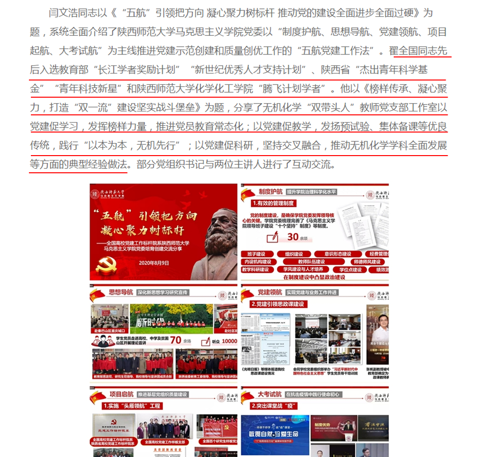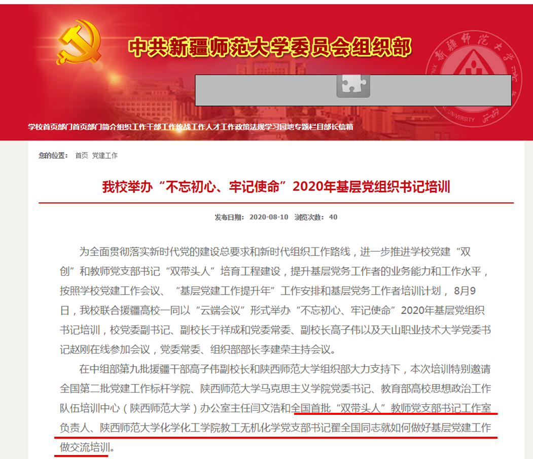 8月9号,应新疆师范大学邀请,教工无机党支部书记翟全国在“新疆师范大学基层党组织书记培训”在线会议上做交流发言,介绍了公司在基层党建工作方面的经验,很好地宣传了教工无机化学党支部。