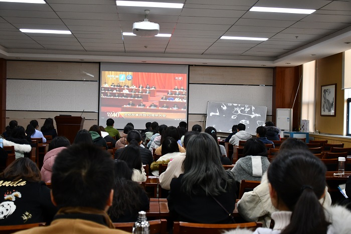 2018年12月18日上午10时,庆祝改革开放40周年大会在人民大会堂举行,beats365唯一官方网站组织班级、团支部代表,员工干部在长安校区致知楼1668会议室全程收看了大会实况。公司党委副书记王晓,副经理肖新军,学工组以及公司办公室全体老师一同收看了直播。