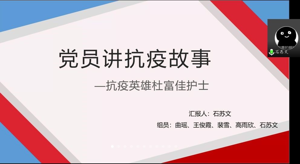 为号召青年党员以抗疫英雄模范为榜样,把爱国情、强国志、报国行自觉融入到学习生活中去,公司本科生第二党支部于4月29日晚上7点通过腾讯会议平台召开以 “学抗疫英雄,讲抗疫故事”为主题的线上主题会议。