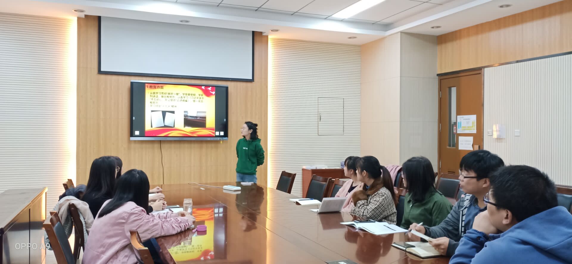 随后,与会成员逐一讨论发言、交流个人心得体会。赖浩然从我党历史的角度出发,分析当代青年的信仰问题引发全体党员共鸣,产生热烈讨论。高婷玉结合个人经历分享毕业生的求职心得,告诉大家要注意日常学习的重要性。