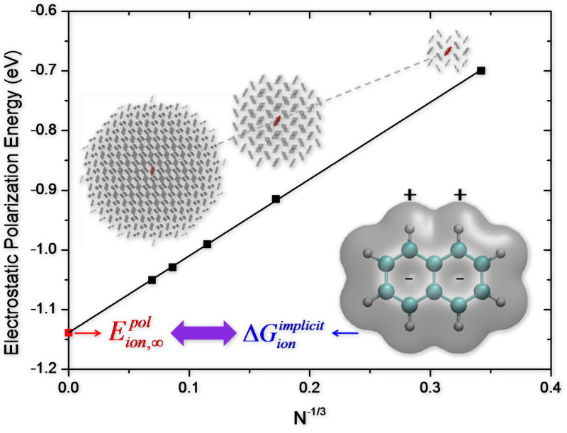 有机固体对电荷载流子的极化能会显著影响有机分子在凝聚相中的位点能,而极化能又依赖于分子的堆积形貌,因此发展显性超分子模型方法用以模拟分子聚集对极化能的影响至关重要的。使用AMOEBA极化力场计算有限团簇并外推至无穷大来显性评估极化能是比较成功的方法之一。但极化力场的计算精度直接受原子极化率控制,针对标准AMOEBA中原子极化率对电子态不相关的缺陷,公司理论与计算化学团队提出了电子态指定的原子极化率(SSAP)概念,基于QTAIM空间划分分子极化率来均匀地参数化,从而得到分子处于不同电子(离子)态和不同位置时的原子极化率。SSAP已被试探性地用于九种有机共轭晶体的电荷载流子的静电极化能,结果表明:p型分子中空穴载流子极化能小于电子载流子,而在n型分子中情况正好相反,小的载流子极化能可能对应着高的导电性能。本论文提出SSAP参数化方法能够有效的应用于求解有机光电分子从真空到凝聚相过程中的自由能。